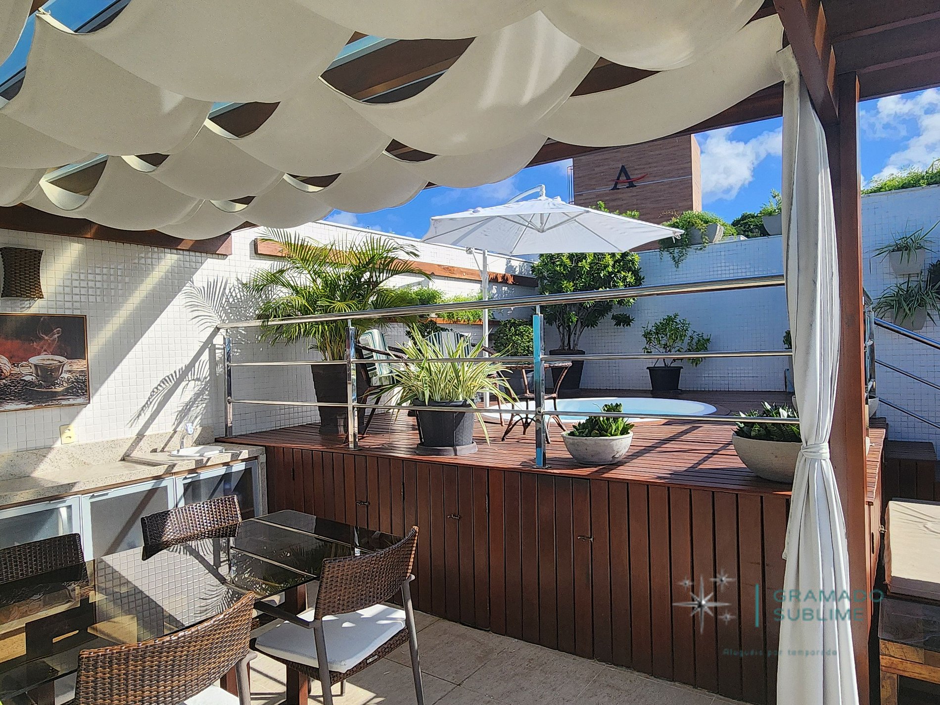Renting an apartment for a season is much more advantageous than staying in a hotel, considering the large space, the kitchen always available for a quick snack or full meal, in addition to greater privacy and autonomy. Another advantage is the possibility of gathering family and friends in a single space, with a private living area. The apartment is cleaned after each guest changes, with towels and bed linens replaced. The apartment is entirely at the guests' disposal.