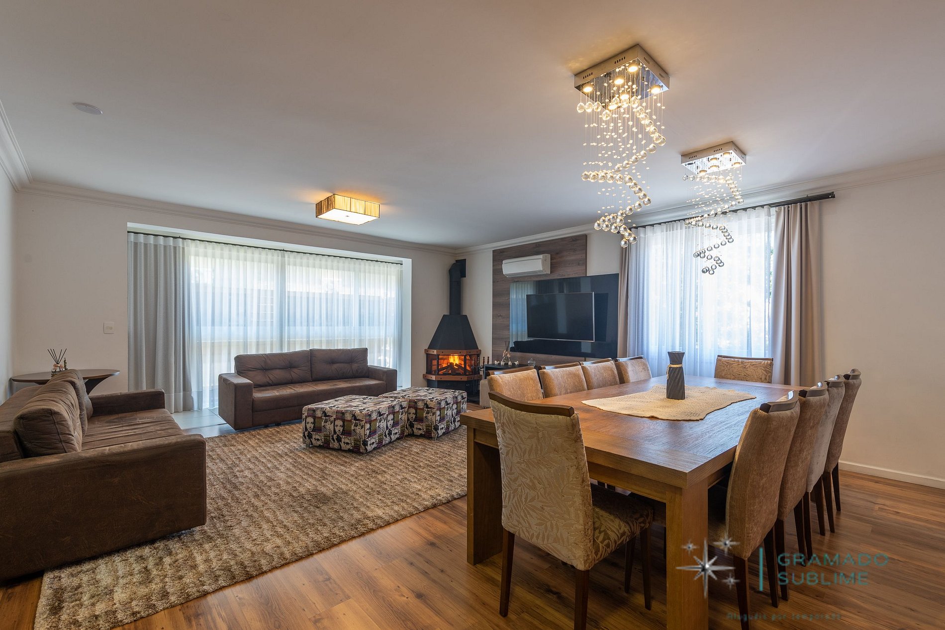 Space designed with the help of decorator with the aim of comfortably hosting groups of friends or large families. The apartment offers covered parking space. The true backyard of the apartment is the very center of Gramado. The location is great. You literally do not have to leave the car to go to the main sights of Gramado. We care about offering an unforgettable experience. Thus, we are always available to assist in the preparation of scripts, as well as to solve any unforeseen events that may occur. I'm sure they'll love this apartment. It was thoughtful, decorated and furnished thinking of guests.See the video of the property