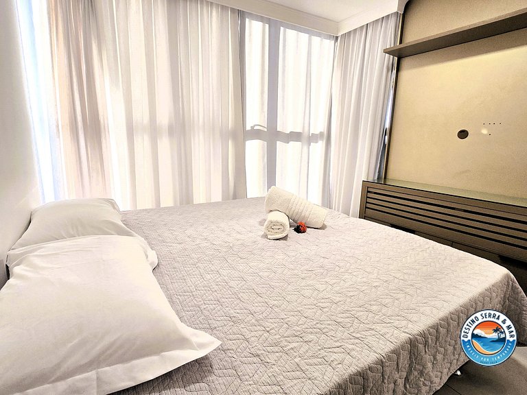 A locação de um apartamento por temporada é bem mais vantajosa do que a estadia em hotel, considerando o espaço amplo, a cozinha sempre disponível para um lanche rápido ou refeições completas, além da maior privacidade e autonomia. Outro diferencial é a possibilidade de reunir a família e os amigos em um único ambiente, com área de convivência privativa. O apartamento é higienizado a cada troca de hóspedes, com substituição de toalhas e roupas de cama. O apartamento fica inteiramente à disposição dos hóspedes.