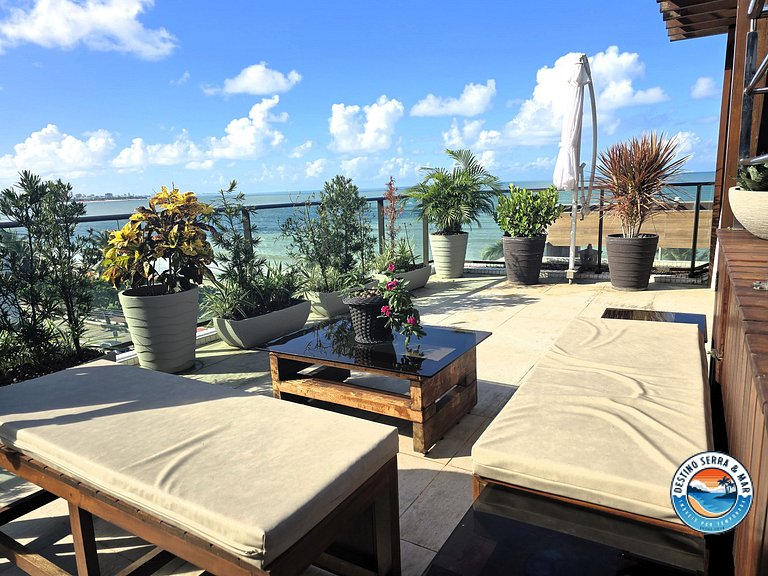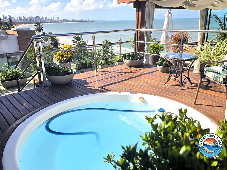Cobertura à beira-mar do cabo branco no Luxor Paulo Miranda, condomínio pé na areia, com ampla estrutura de lazer e com comodidades para proporcionar uma experiência única em João Pessoa. A cobertura proporciona uma estonteante vista para o mar, com um incrível nascer do sol. O roof top exclusivo conta com área para confraternizar e Jacuzzi aquecida e hidromassagem.