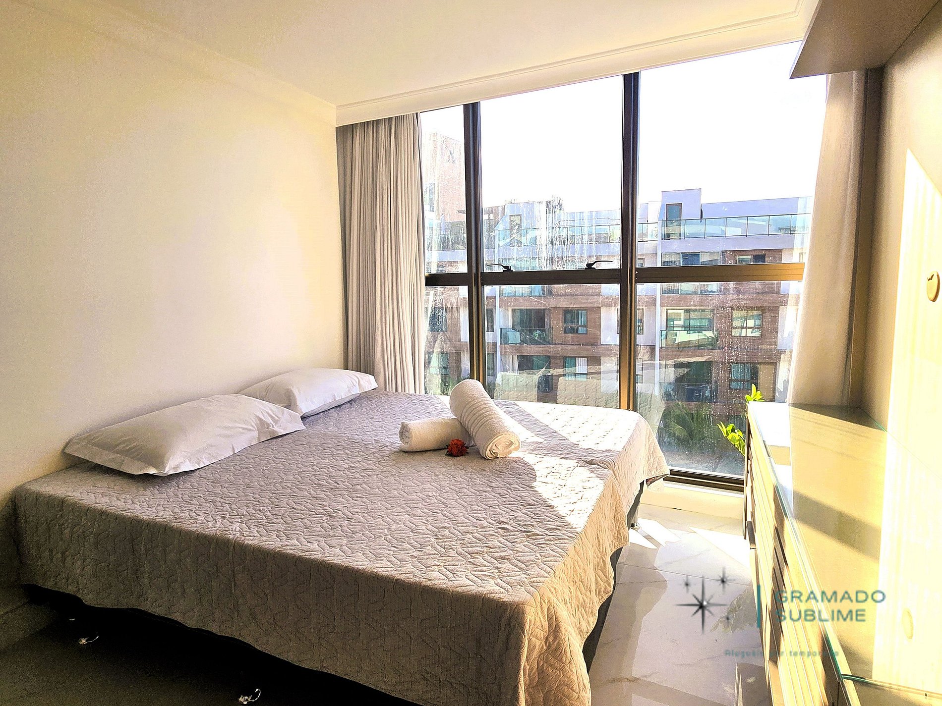 A locação de um apartamento por temporada é bem mais vantajosa do que a estadia em hotel, considerando o espaço amplo, a cozinha sempre disponível para um lanche rápido ou refeições completas, além da maior privacidade e autonomia. Outro diferencial é a possibilidade de reunir a família e os amigos em um único ambiente, com área de convivência privativa. O apartamento é higienizado a cada troca de hóspedes, com substituição de toalhas e roupas de cama. O apartamento fica inteiramente à disposição dos hóspedes.
